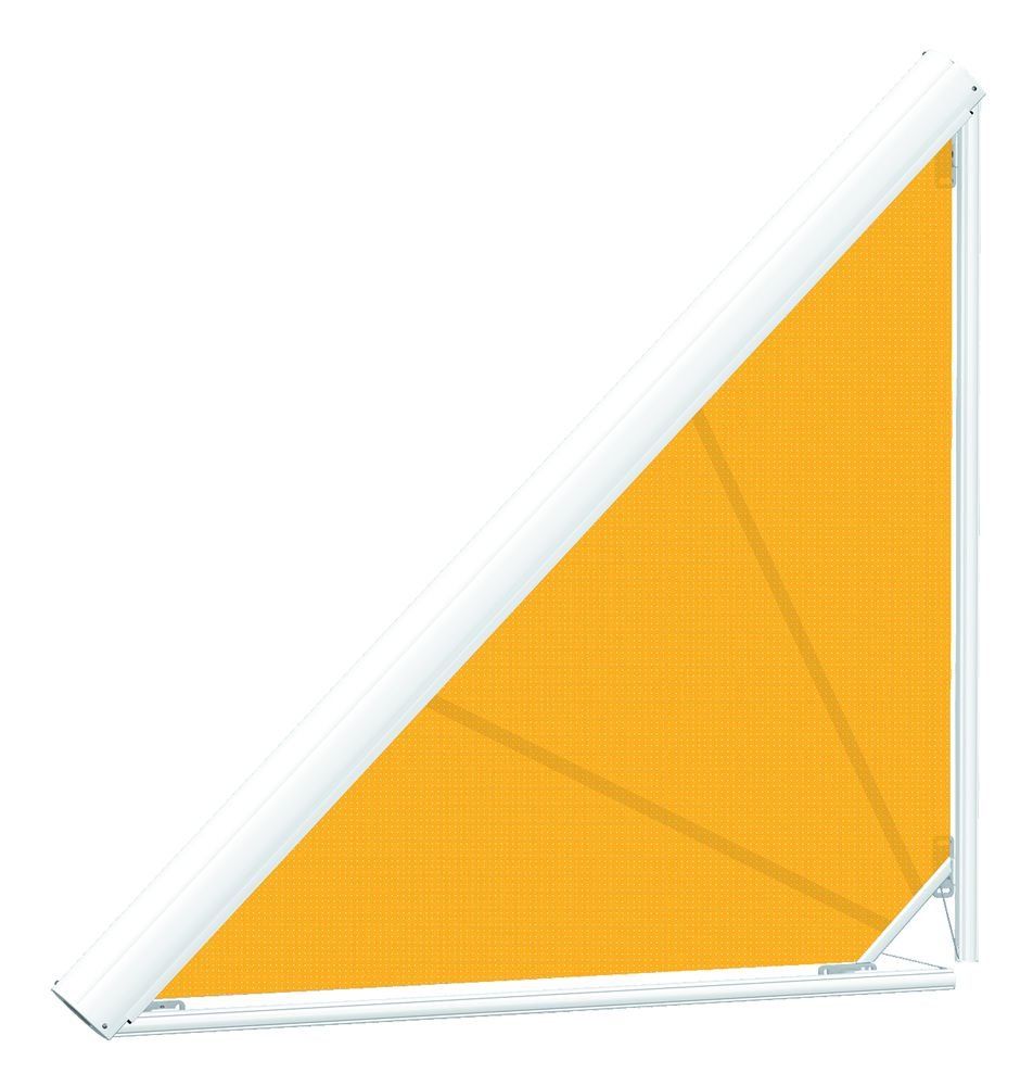 Window blind with round cassette and tensioning system, made to fit triangular areas of glass. The cleverly devised blind system allows instillation in any plane –with an extension of up to 500cm.